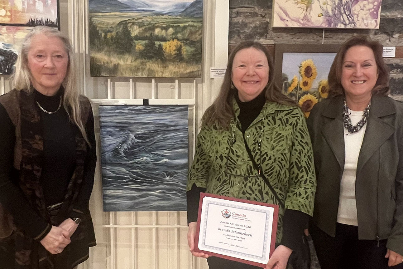Honourable Mention – Congratulations to Brenda Schamehorn – “Rough Waters”, presented by Jurors, Marta Scythes and Diane Dowsett.